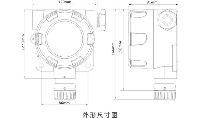报警方式LED光报警,(可选配爆声光报警器)